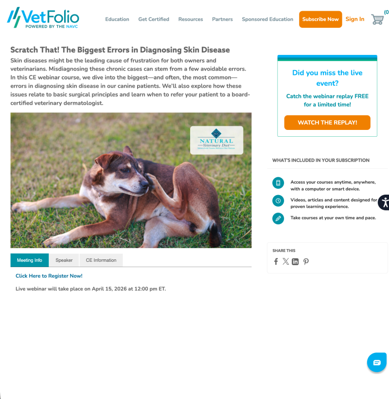 In this complimentary, 1-hour VETgirl–Blue Buffalo webinar, Dr. Sara Ramos, DACVD will take us on a deep dive into the pathogenesis of canine atopic dermatitis. Join Dr. Ramos as she takes us through what you need to help target your treatment options, from cytokines of importance to treatment targets and how our current treatments modify this pathogenesis.