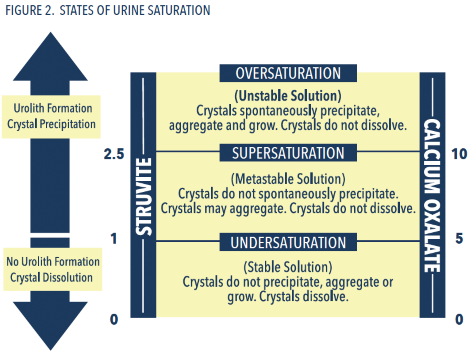 To show that feeding BLUE Natural Veterinary Diet™ Kidney Support foods can result in clinically significant urine Relative Supersaturation (RSS) values less than 3 for calcium oxalate, which has been shown to limit the formation of calcium oxalate uroliths (See Figure 2).
