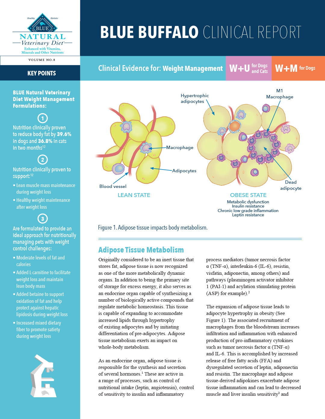 BLUE Natural Veterinary Diet Weight Management Formulations are formulated to provide an ideal approach for nutritionally managing pets with weight control challenges.